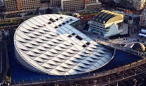 The Exedra: Large, semi-circular outdoor seating areas with stone benches